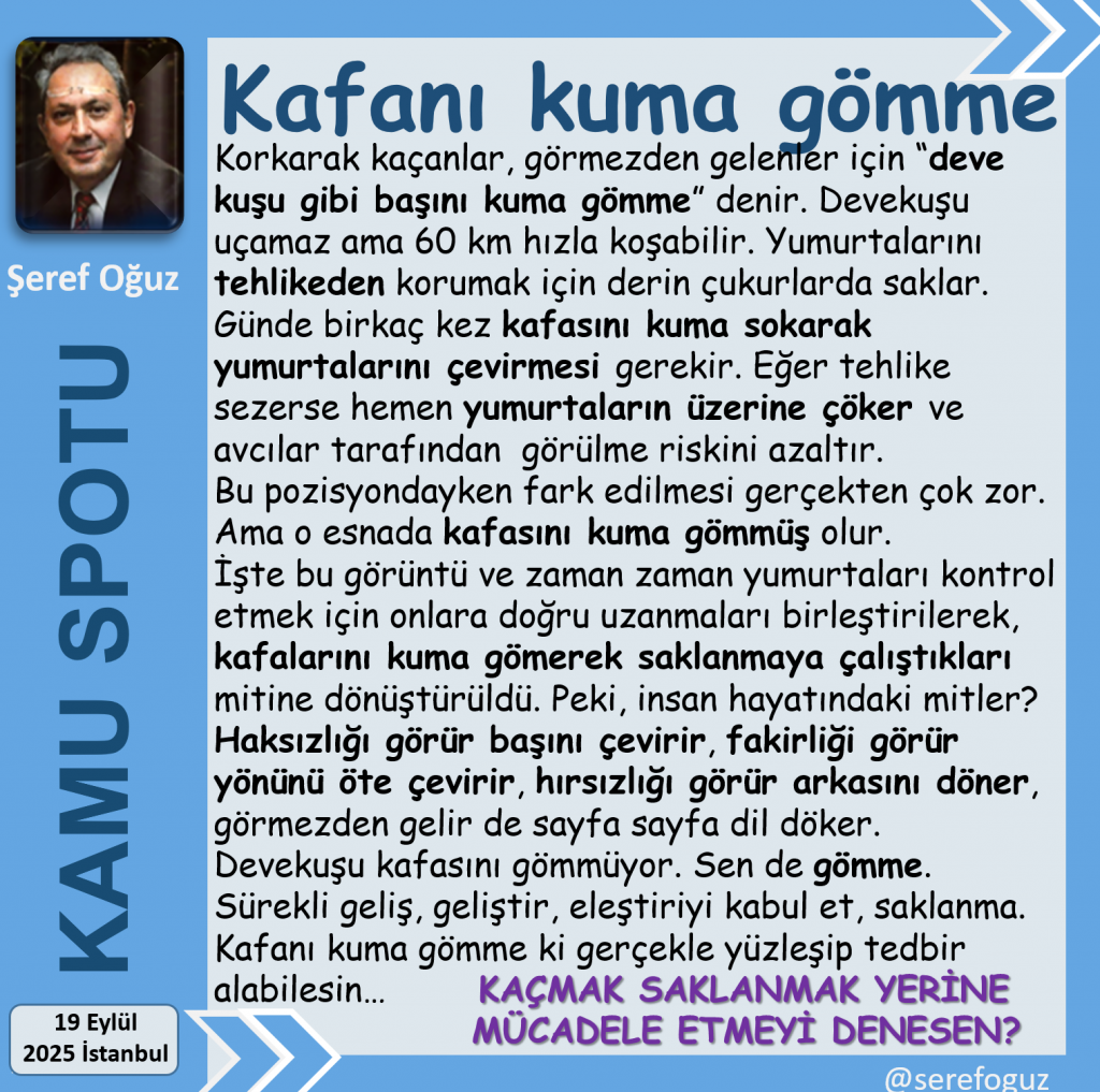 Kafanı kuma gömme ki gerçekle yüzleşip tedbir alabilesin…
