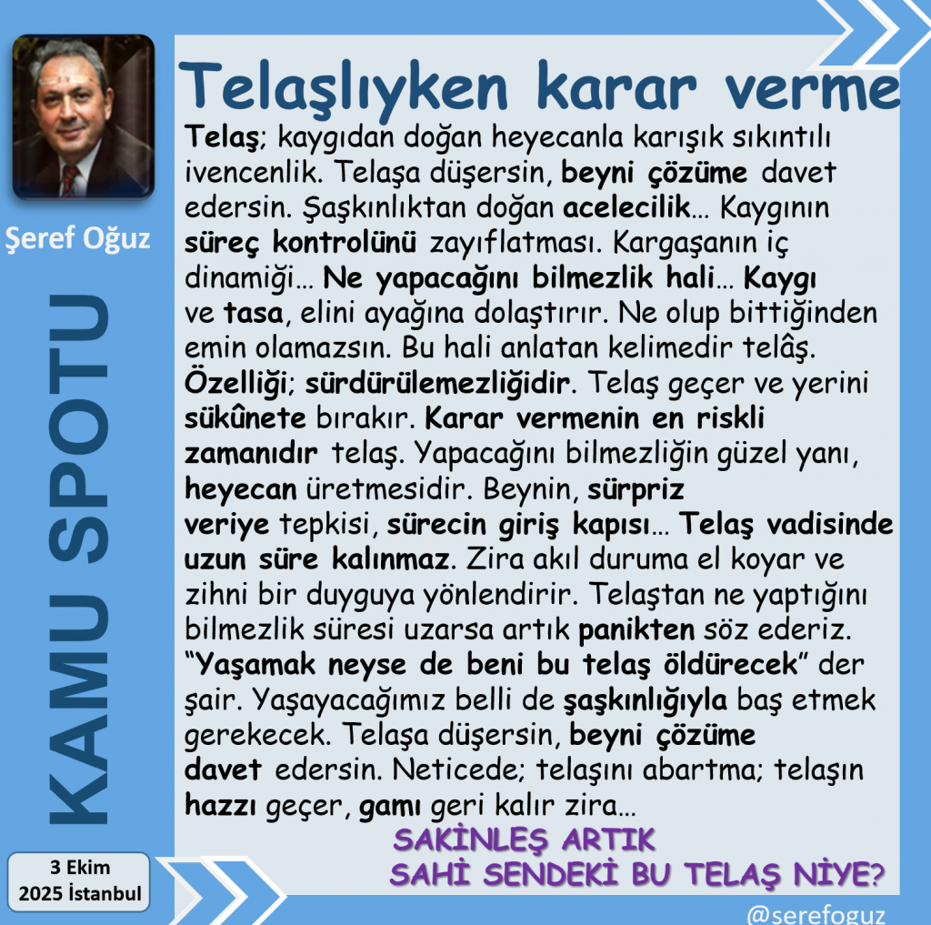Telaşa düşersin, beyni çözüme davet edersin. N