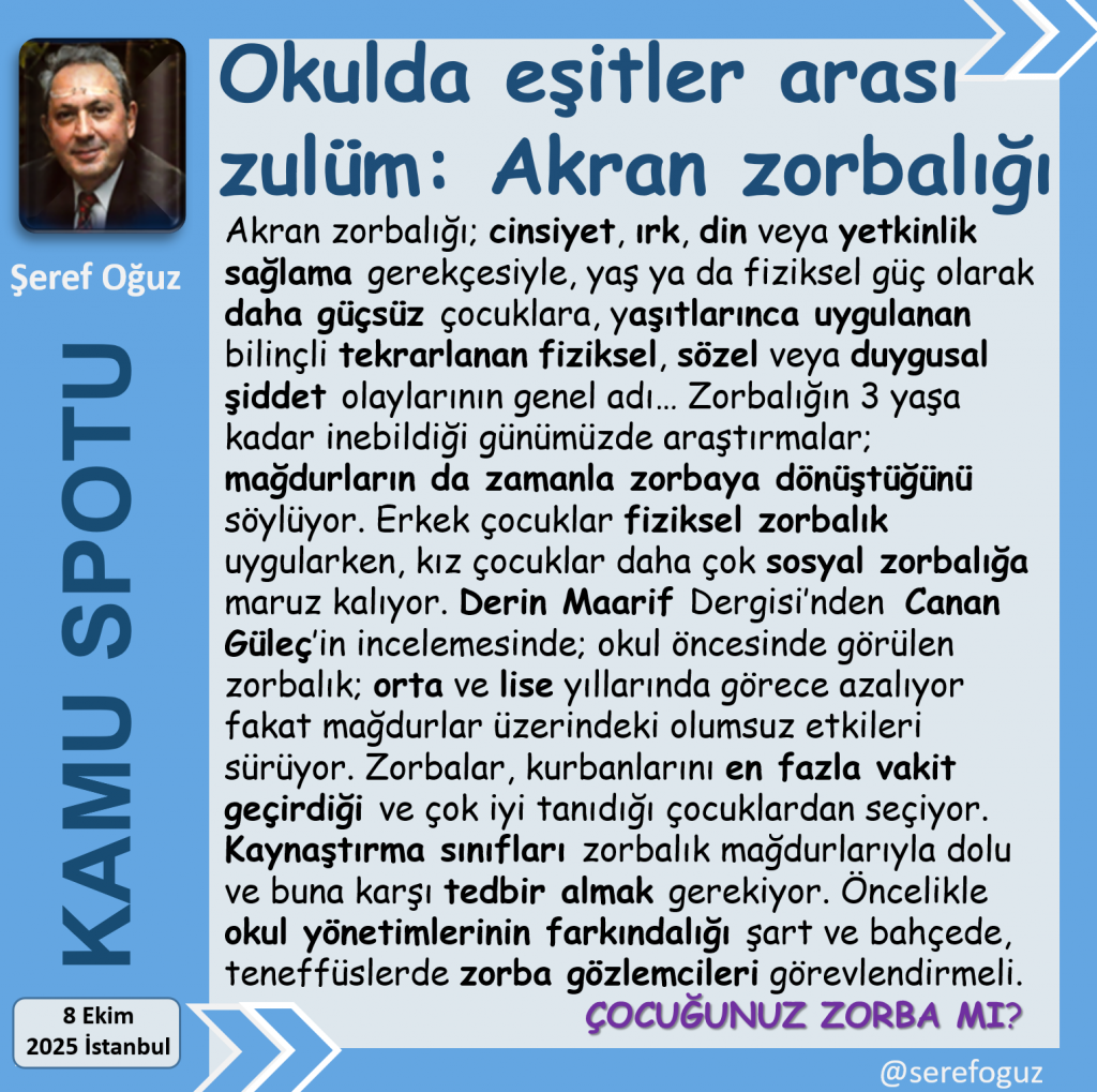 Okulda eşitler arası zulüm: Akran zorbalığı