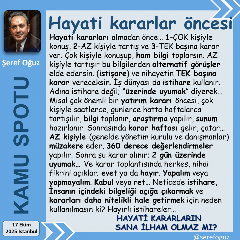 HAYATİ KARARLARIN SANA İLHAM OLMAZ MI?