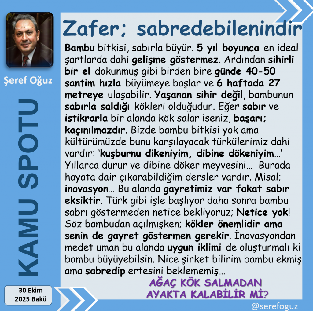 Söz bambudan açılmışken; kökler önemlidir ama senin de gayret göstermen gerekir.