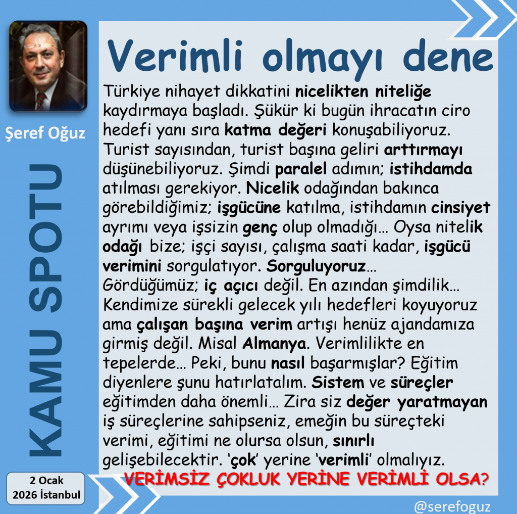 Oysa nitelik odağı bize; işçi sayısı, çalışma saati kadar, işgücü verimini sorgulatıyor.