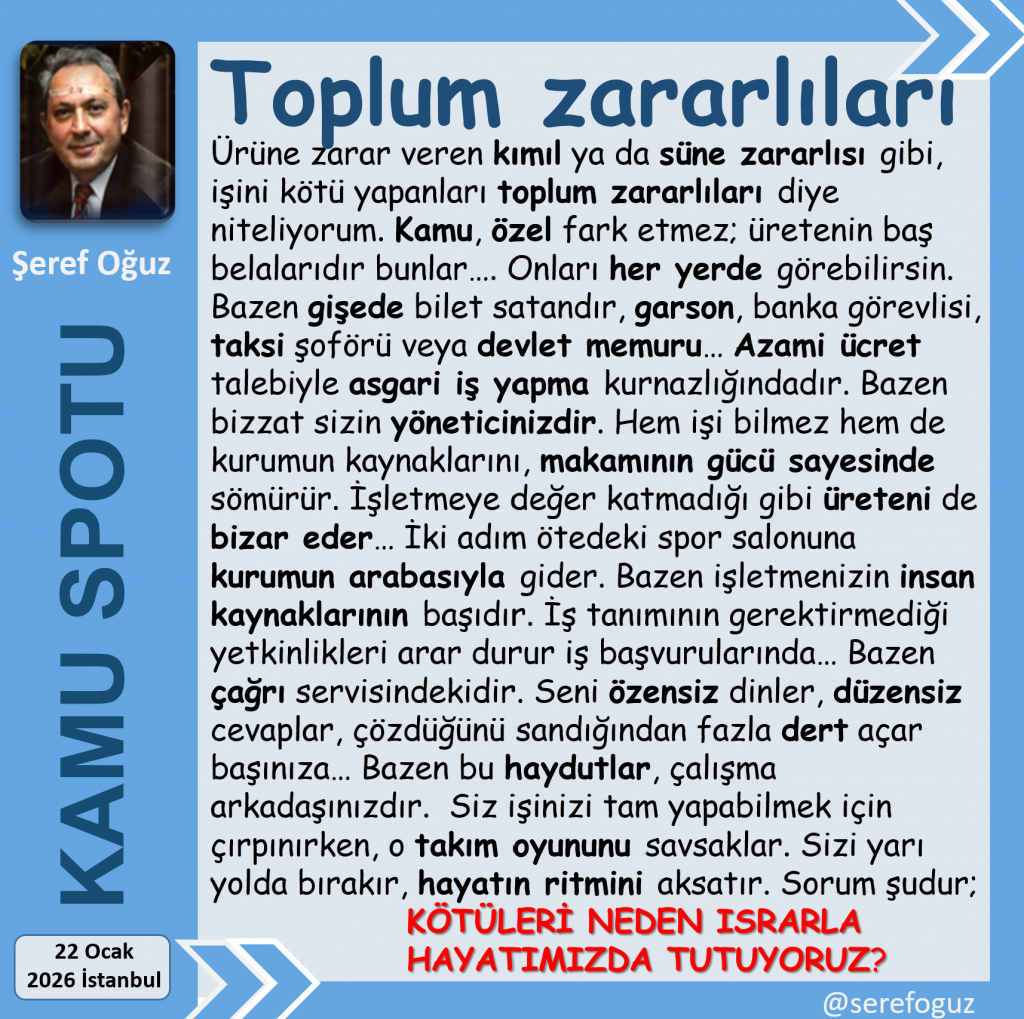işini kötü yapanları toplum zararlıları diye niteliyorum.