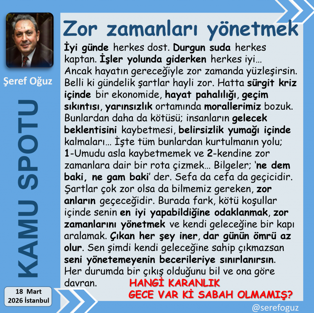 Şartlar çok zor olsa da bilmemiz gereken, zor anların geçeceğidir.