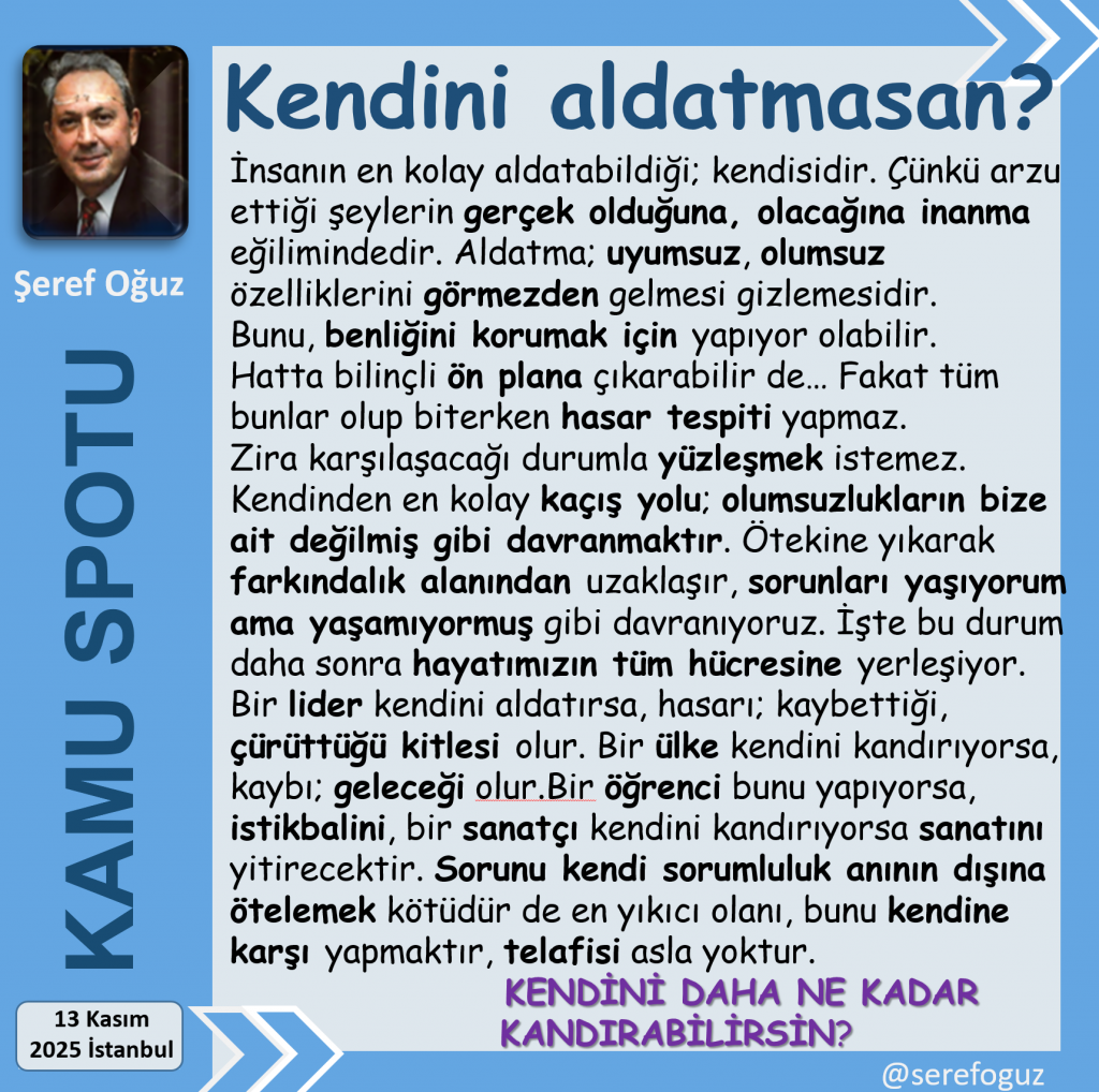 Bir ülke kendini kandırıyorsa, kaybı; geleceği olur.