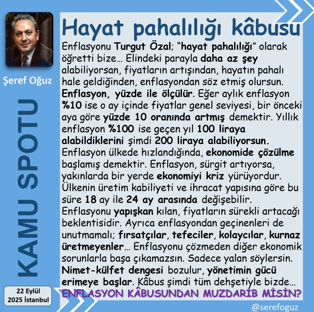 Enflasyonu Turgut Özal; “hayat pahalılığı” olarak öğretti bize…