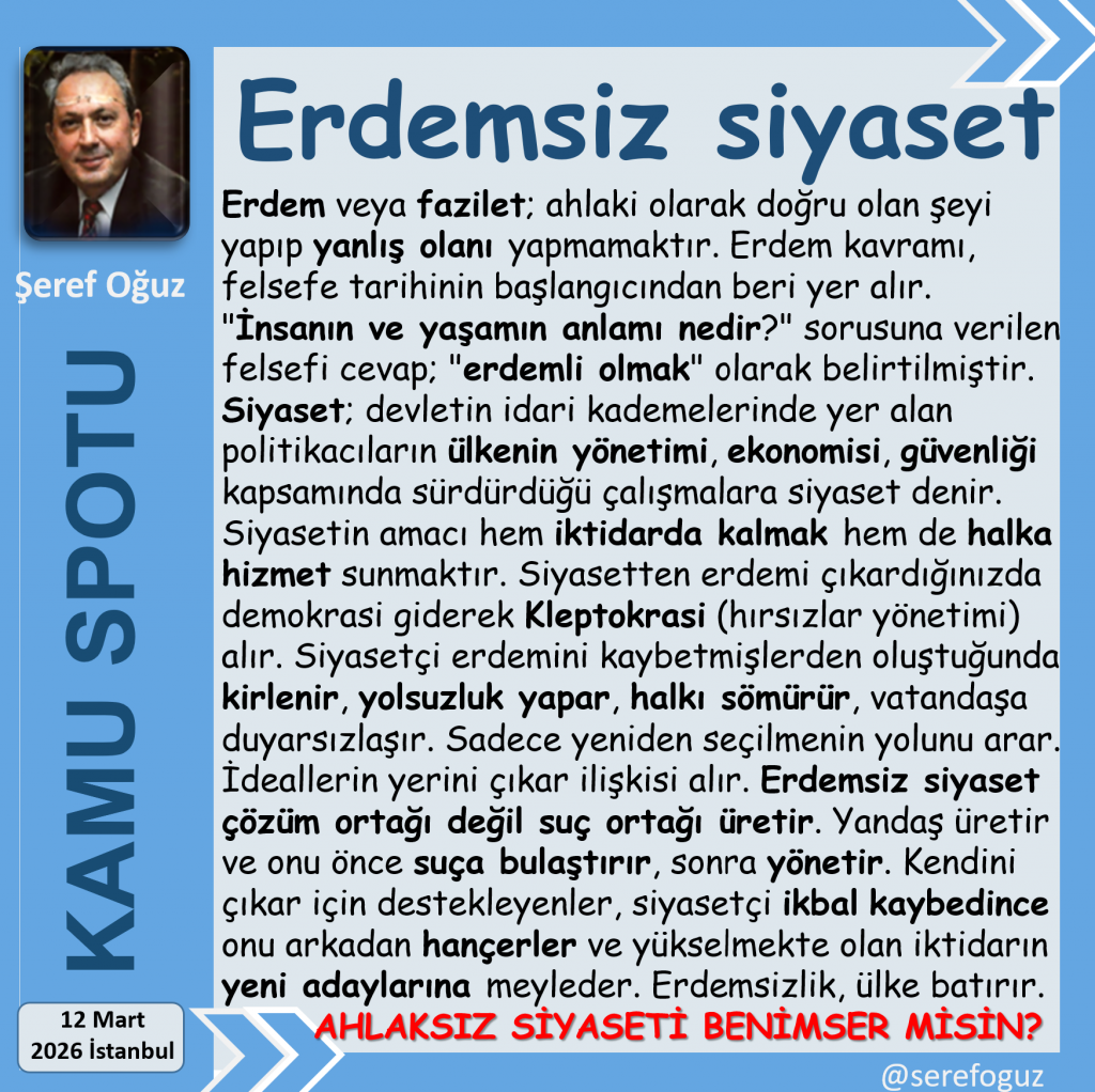 Erdemsiz siyaset çözüm ortağı değil suç ortağı üretir.