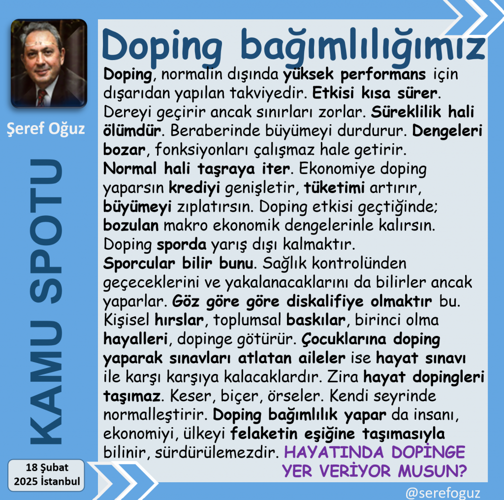 Doping bağımlılık yapar da insanı, ekonomiyi, ülkeyi felaketin eşiğine taşımasıyla bilinir, sürdürülemezdir.