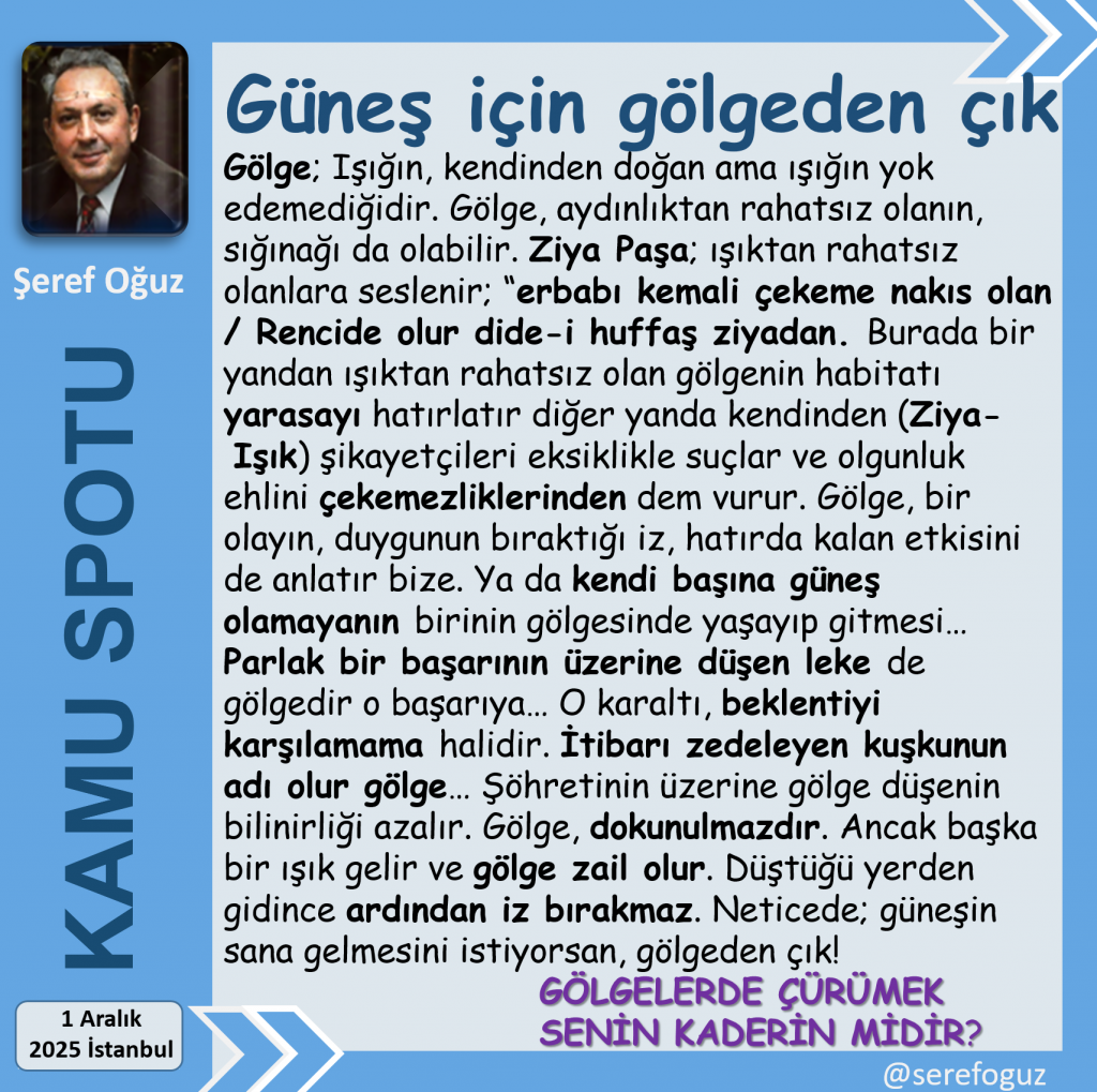 Neticede; güneşin sana gelmesini istiyorsan, gölgeden çık!