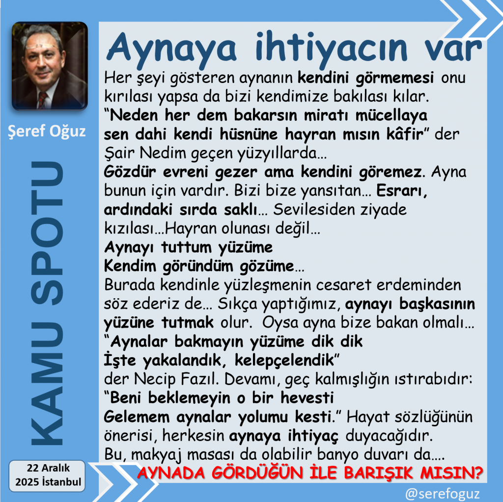 Hayat sözlüğünün önerisi, herkesin aynaya ihtiyaç duyacağıdır.