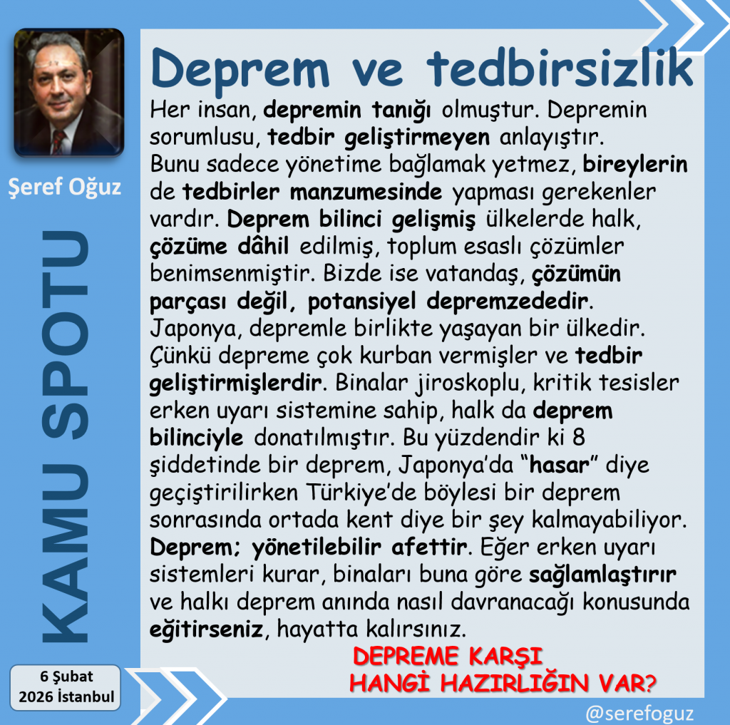 Deprem; yönetilebilir afettir.
