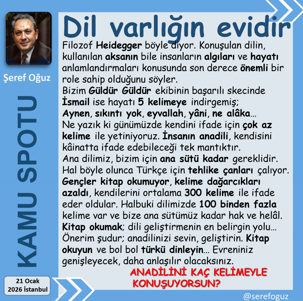 Önerim şudur; anadilinizi sevin, geliştirin.