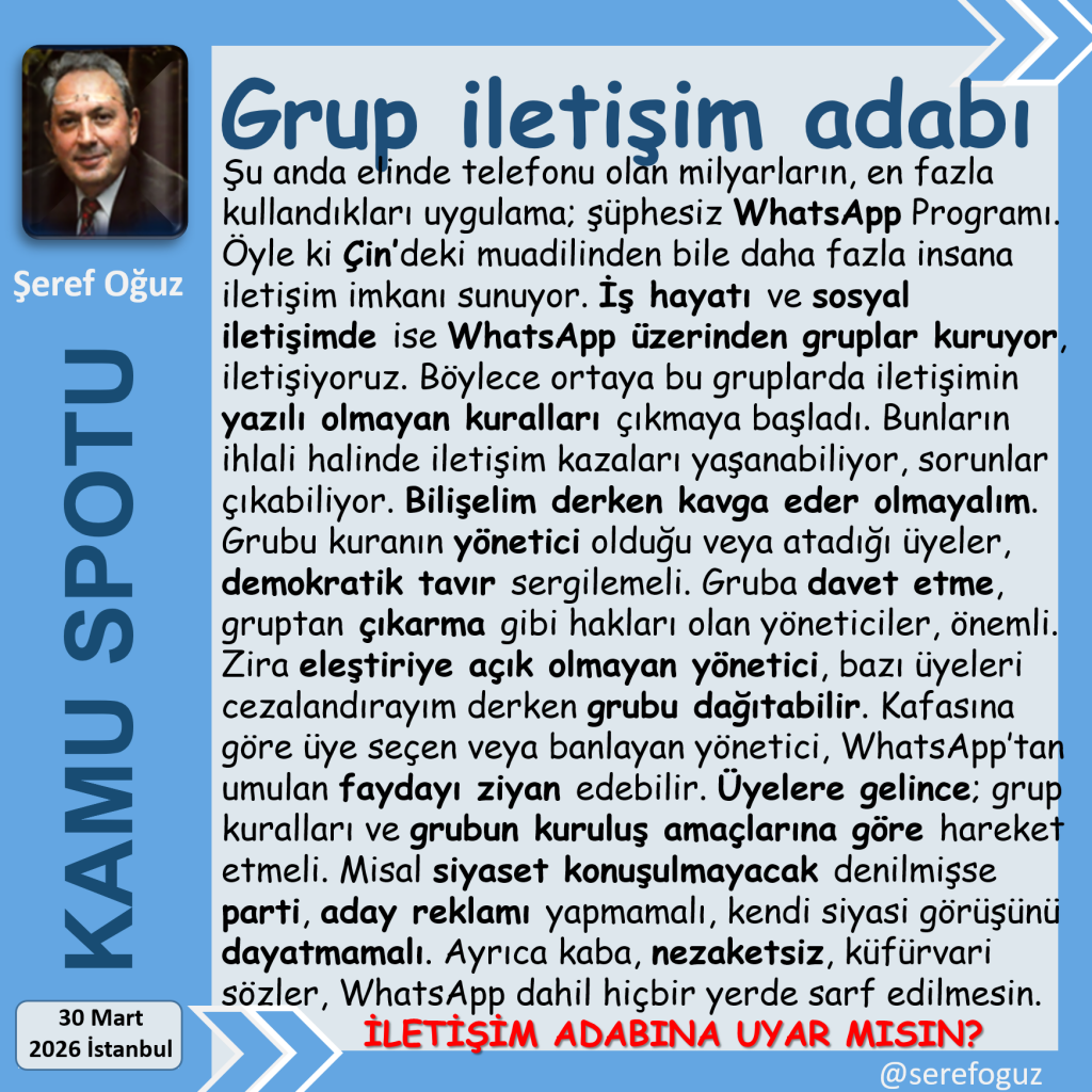 Ayrıca kaba, nezaketsiz, küfürvari sözler, WhatsApp dahil hiçbir yerde sarf edilmesin.
