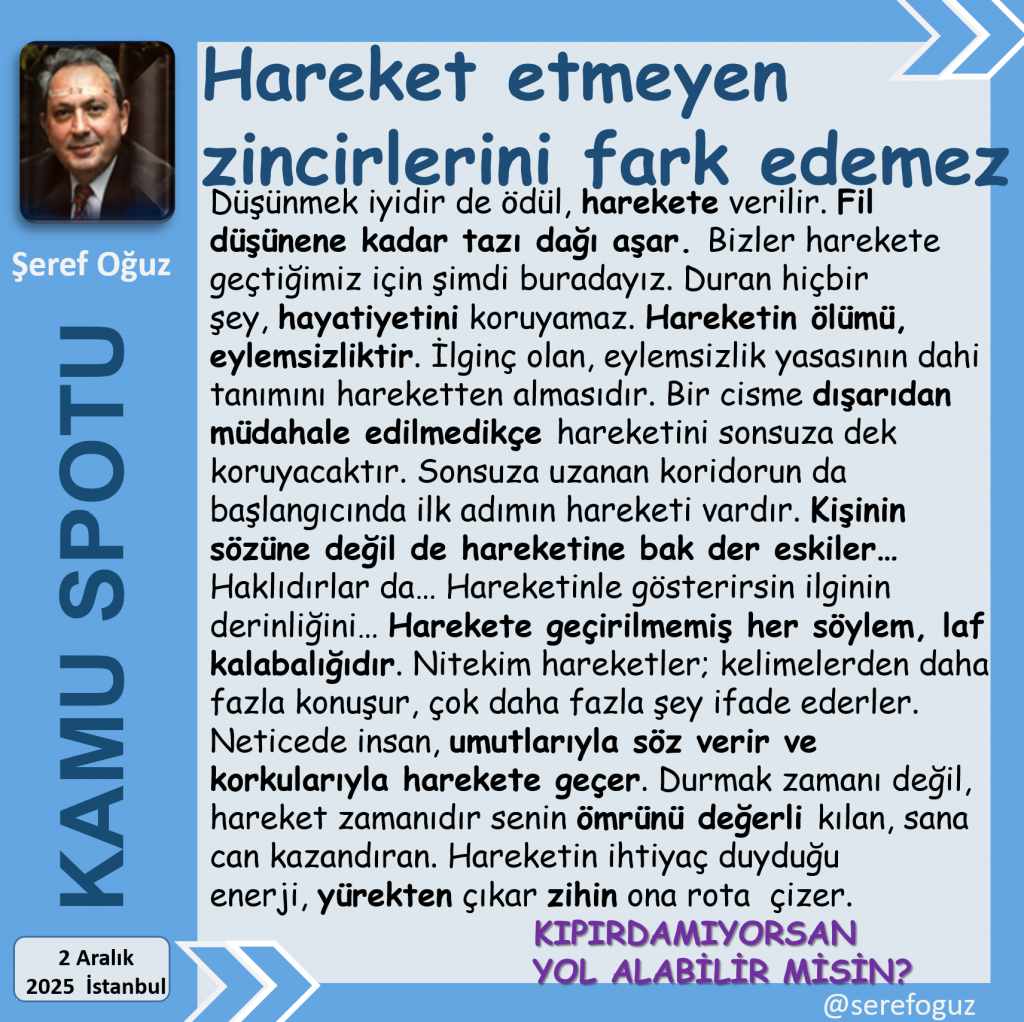 Durmak zamanı değil, hareket zamanıdır senin ömrünü değerli kılan, sana can kazandıran.