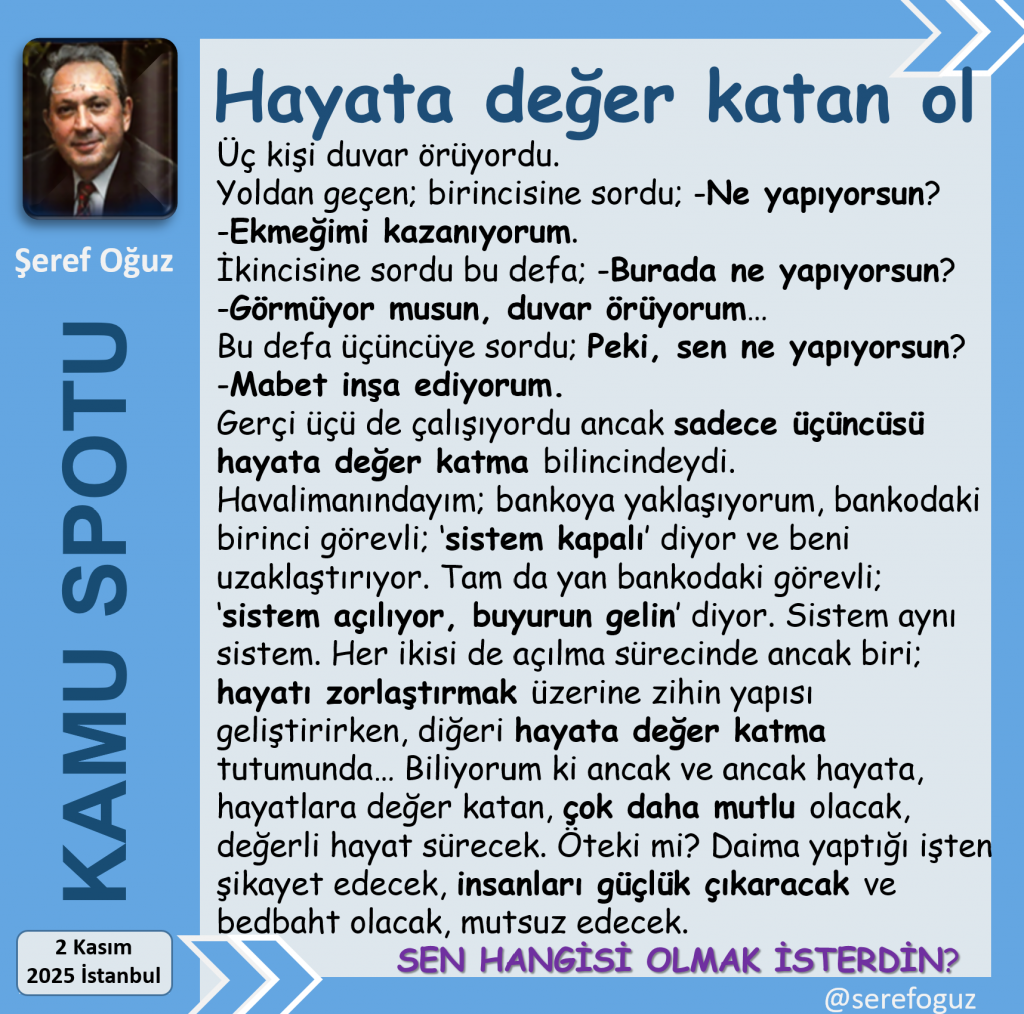 Biliyorum ki ancak ve ancak hayata, hayatlara değer katan, çok daha mutlu olacak, değerli hayat sürecek.