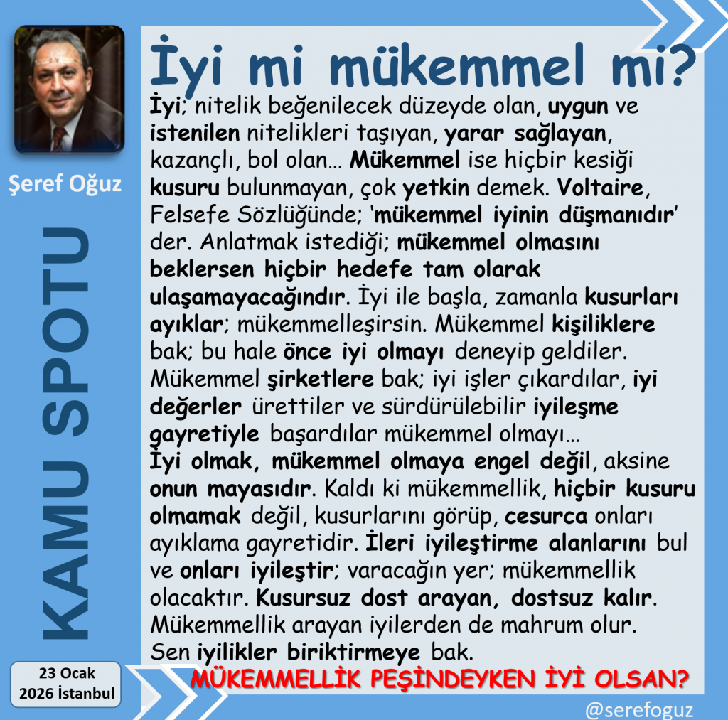 İyi olmak, mükemmel olmaya engel değil, aksine onun mayasıdır.