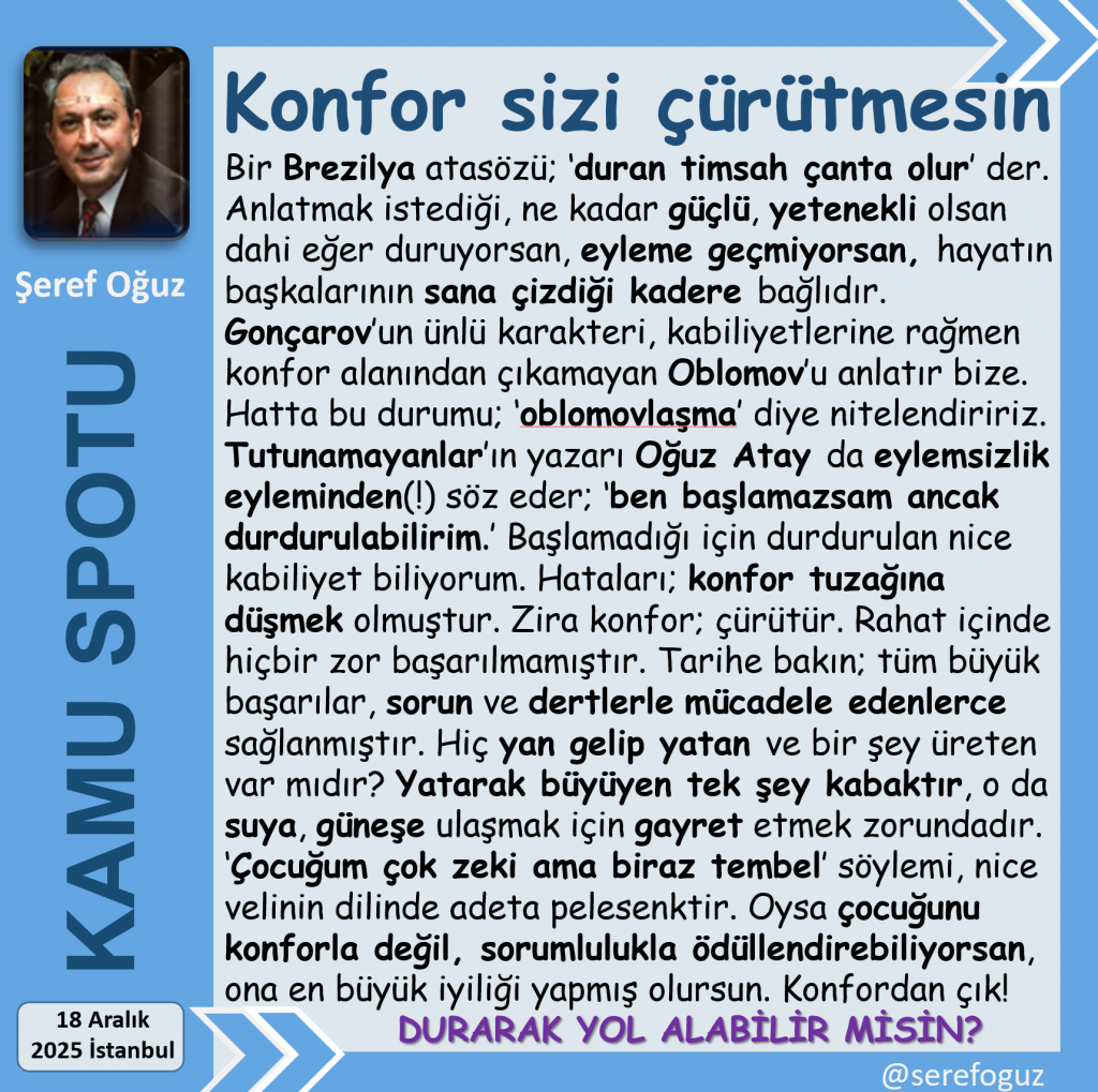Zira konfor; çürütür.