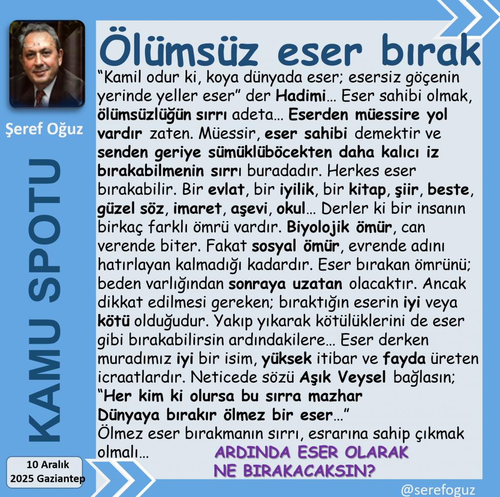 Ölmez eser bırakmanın sırrı, esrarına sahip çıkmak olmalı…