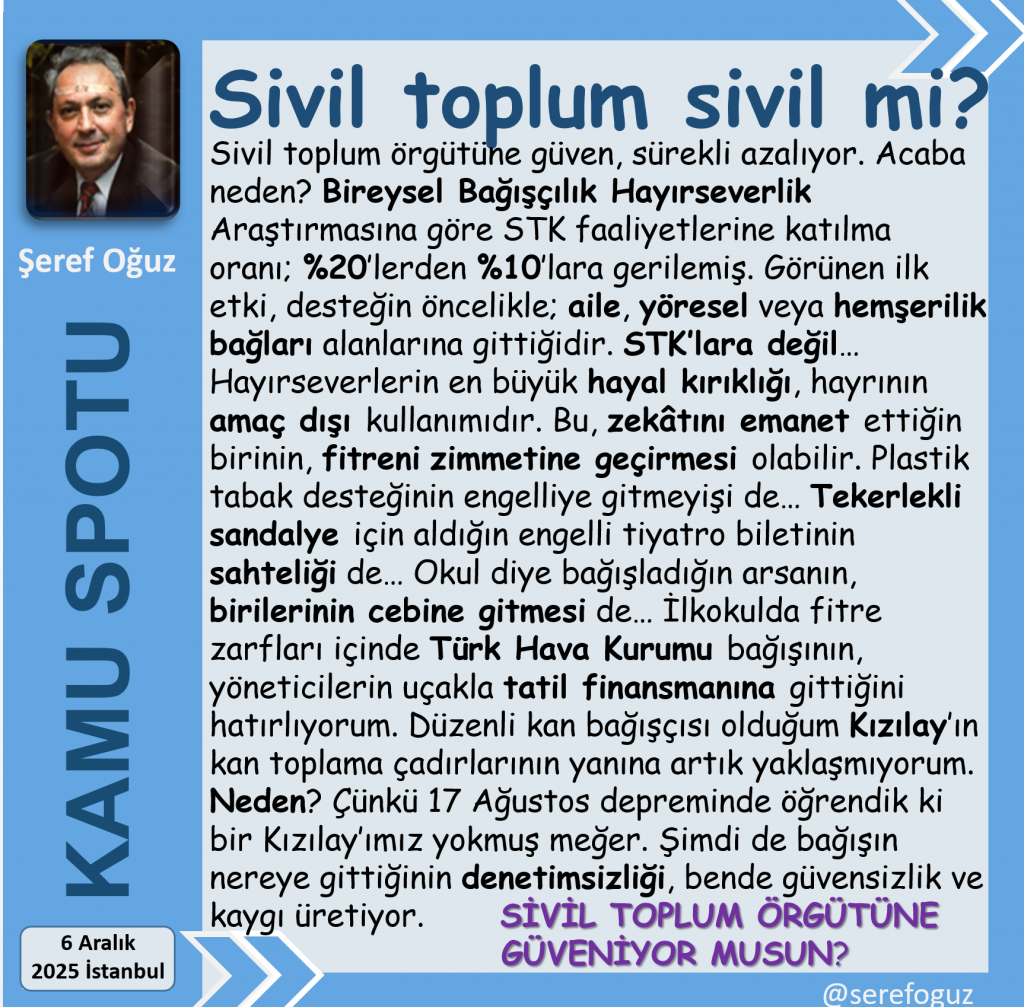 Şimdi de bağışın nereye gittiğinin denetimsizliği, bende güvensizlik ve kaygı üretiyor.